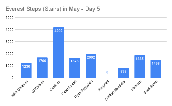 Steps (Stairs) Climbed Through Day 5: 15,030 stairs (1,503 flights)