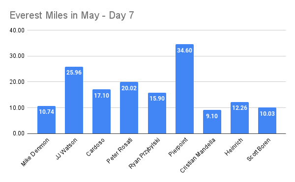 If we keep at this pace, we are looking at a total of 689 miles rucked, and over 90K stairs climbed! I would really like to push those numbers to 700+ miles and 100K+ stairs, so let’s keep it going!