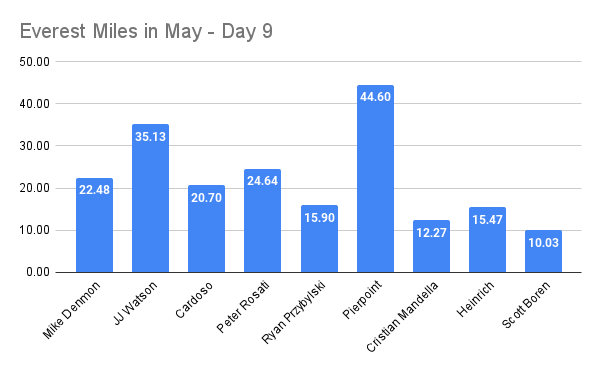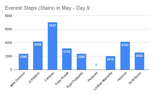 Steps (Stairs) Climbed Through Day 9: 27,879 stairs (2,787.90 flights)