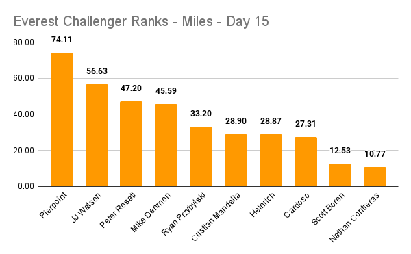 So, I think the updated rankings might have renewed some vigor, since Day 15 saw an increase in activity. It wasn’t a record day, but ti was definitely an elevated output in miles.