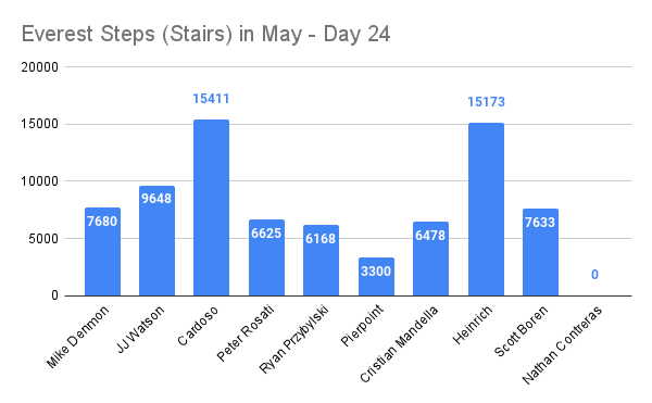 Steps (Stairs) Climbed on Day 24: 5,953 stairs (595.30 flights)