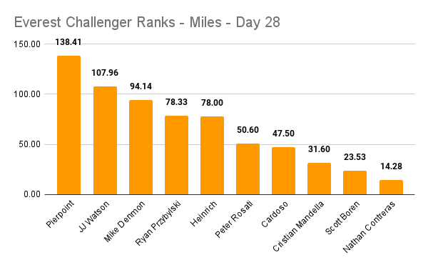 Day 28 is the end of Week 4. Leaderboard posts and averages coming up!