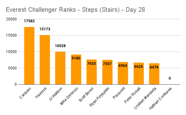 Steps (Stairs) Climbed Through Day 28: 87,110 stairs (8,711.00 flights)