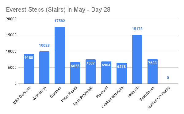 Day 28, the end of Week 4, and the day before Memorial Day. We keep moving because that’s what we do.